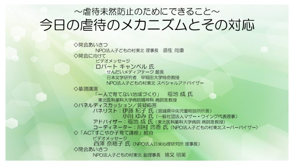 育てにくさの裏にあるものを様々な視点から考え、虐待未然防止のために何ができるのかを探り、