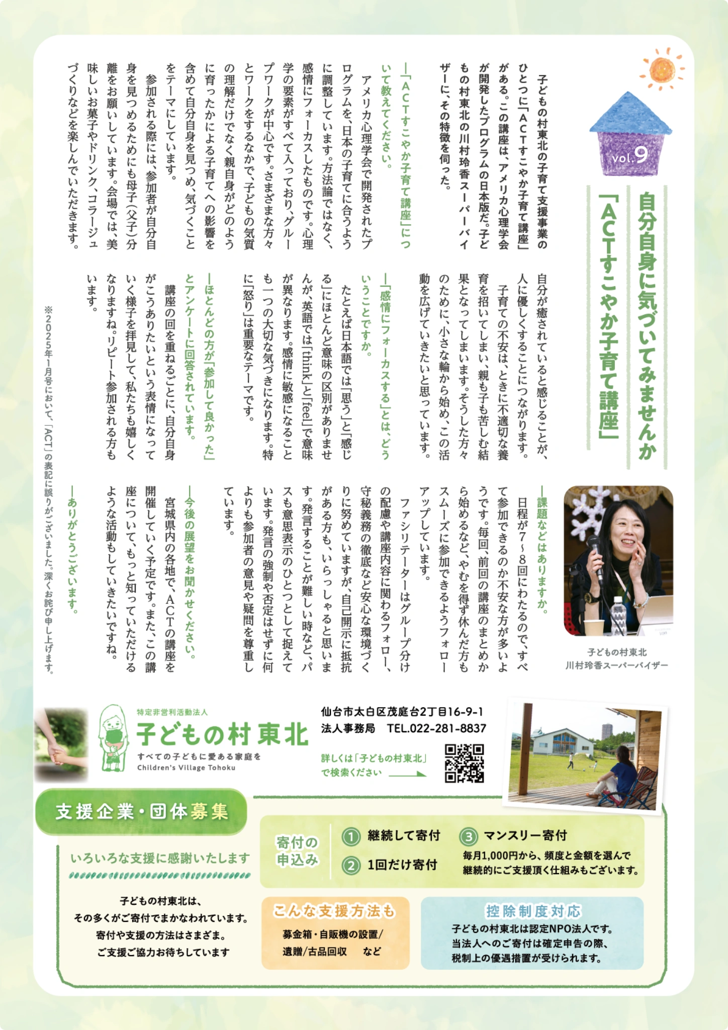 【子どもの村東北建設にご支援いただきました】